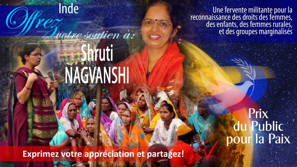 Shruti NAGVANSHI est une fervente militante pour la reconnaissance des droits des femmes et des enfants, des femmes rurales spécialement, et ceux des groupes marginalisés, en Inde, y compris la caste connue sous le nom de Dalit. Elle est l’un des membres fondateurs du Comité populaire de vigilance sur les droits de l’homme (PVCHR) et l’une des fondatrices du forum des femmes Savitri Bai Phule Mahila Panchayat, en plus d’avoir collaboré à plusieurs autres projets pour autonomiser les minorités.