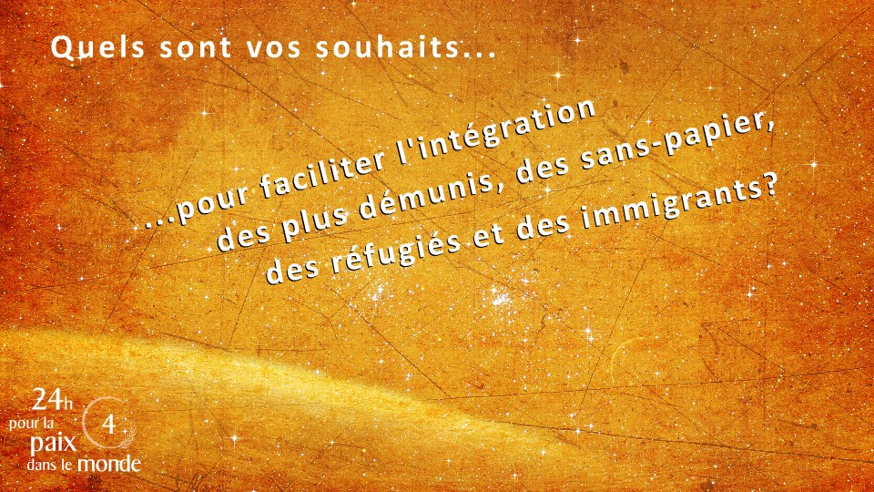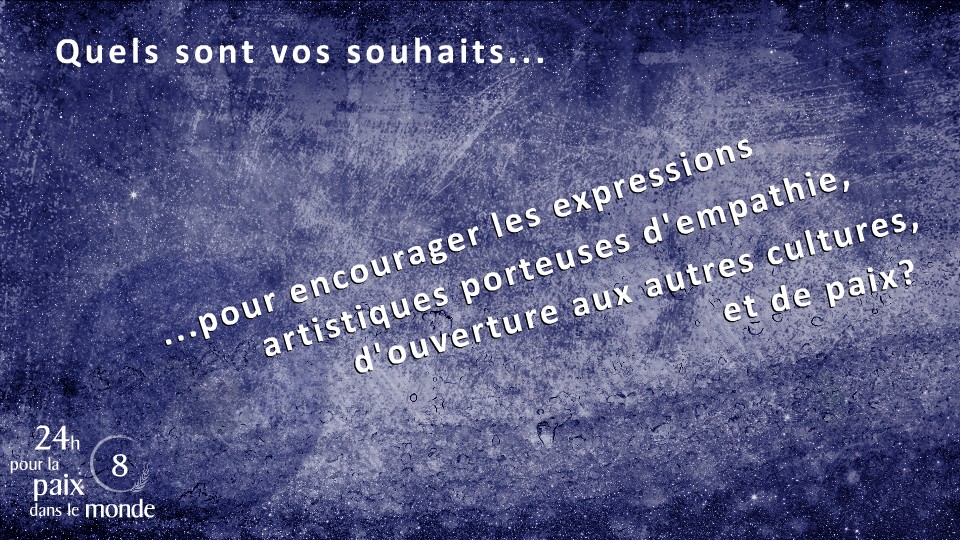 Les 24 heures pour la paix dans le monde, c’est une vigile solidaire sans frontière qui se tient chaque premier de l’An, sur la toile planétaire. Cette année, la question centrale était : Que souhaitez-vous pour l’humanité et la planète en 2015?