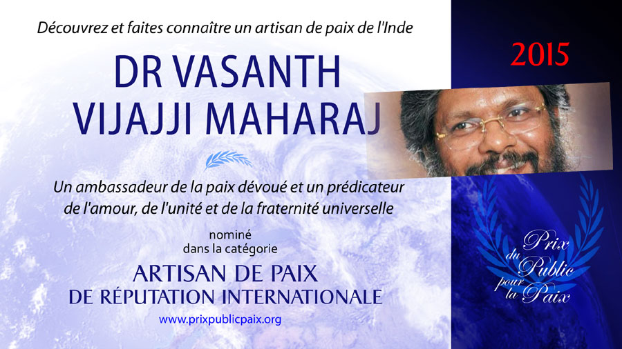 Voir son profil : https://prixpublicpaix.org/dr-vasanth-vijaji-maharaj/