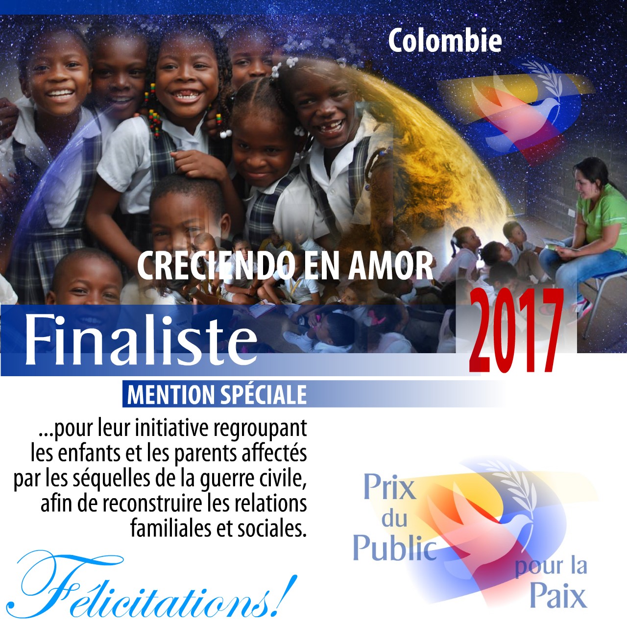 Le jury offre ses chaleureux encouragements à CRECIENDO EN AMOR, finaliste du Prix de la Paix 2017 dans la catégorie Initiatives d’éducation à la non-violence et à la paix.